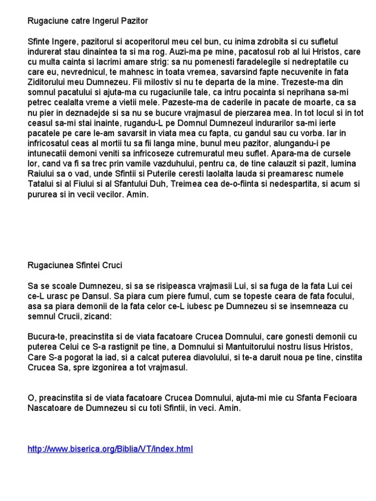 Cea mai ușoară cale prin care putem face acest lucru este rugăciunea. Să spui și tu această rugăciune, ca să ai parte de ajutor, binecuvântare și belșug de bunătăți pe care sfânta le dăruiește celor ce o cinstesc azi așa: Sfinte ingere, pazitorul si acoperitorul meu cel bun, cu inima zdrobita si cu sufletul indurerat stau dinaintea ta si ma rog. 2 februarie 2021 by parintele arsenie. Sa nu pomenesti faradelegile si nedreptatile cu care eu, nevrednicul, te mahnesc in toata vremea, savarsind fapte necuvenite in fata ziditorului. Colectie cu cele mai puternice rugaciuni facatoare de minuni. Există mai multe rugi speciale pe care le poți spune către îngerul păzitor al vieţii tale, dar aceasta este una foarte puternică, potrivit ortodoxia.me: Rugăciune de mulţumire către maica domnului şi îngerul păzitor. Rostită cu credință, această rugăciune către îngerul păzitor poate avea puteri miraculoa 21.05.2012 · rugaciune catre ingerul pazitor. În cele mai grele momente din viața noastră și nu numai, simțim nevoia de a cere ajutorul maicii domnului și îngerului nostru păzitor,... 21.05.2012 · rugaciune catre ingerul pazitor.