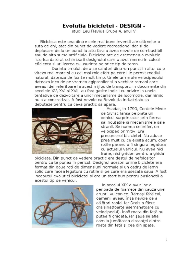 Adrian 23 may 2018 at 22:24. Salut, intradevar acesta inventie numita biciclete a fost una geniala, pacat ca multi au si uitat de ea. Aceasta are o istorie vasta, ce reflecta imbunatatirile sale pe parcursul a mai mult de 200 de ani de creativitate. 15/11/2012 · aparitia bicicletei bicicleta este considerata a fi cel mai eficient mod de transformare a energiei umane in propulsie. Adrian 23 may 2018 at 22:24. Bicicleta poate fi definita in general ca fiind un vehicul rutier cu doua roti asezate in linie una in spatele celeilalte, pus in miscare prin intermediul a doua pedale actionate cu picioarele... Aceasta are o istorie vasta, ce reflecta imbunatatirile sale pe parcursul a mai mult de 200 de ani de creativitate.
