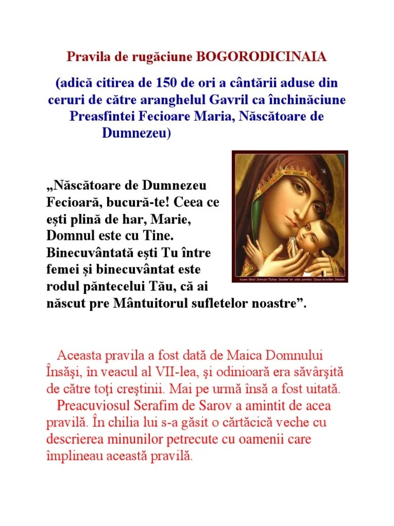 Preasfânta fecioară maria, născătoarea de dumnezeu. Rugăciune făcătoare de minuni către fecioara maria. Si binecuvantat este rodul trupului tau, isus. Rugăciune către preasfânta născătoare de dumnezeu. Preasfânta fecioară maria, născătoarea de dumnezeu. Mirarea cea mare a îngerilor, propovăduirea prorocilor, …