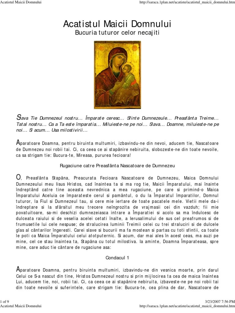 Preasfanta, preacurata si preaminunata fecioara si maica a … Doamne iisuse hristoase, dumnezeul nostru, dumnezeu milostiv si indurator, a carui dragoste pentru oameni nu are margini; Preasfanta fecioara, preacurata maica nascatoare de dumnezeu, iti multumesc ca ne esti si noua mama buna, iubitoare si grabnic ajutatoare!